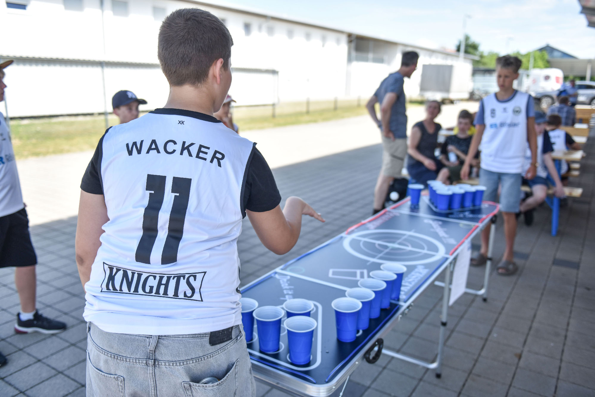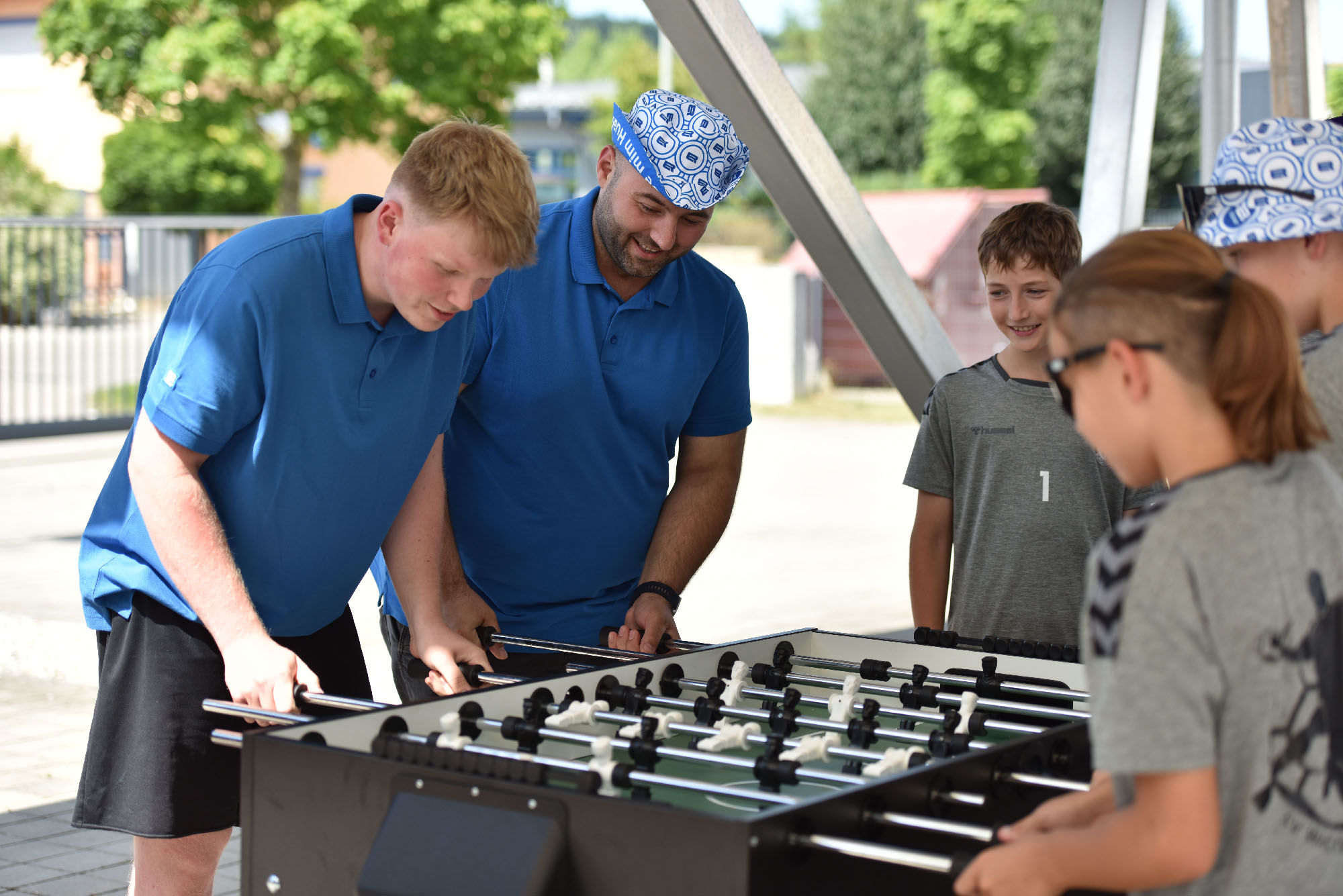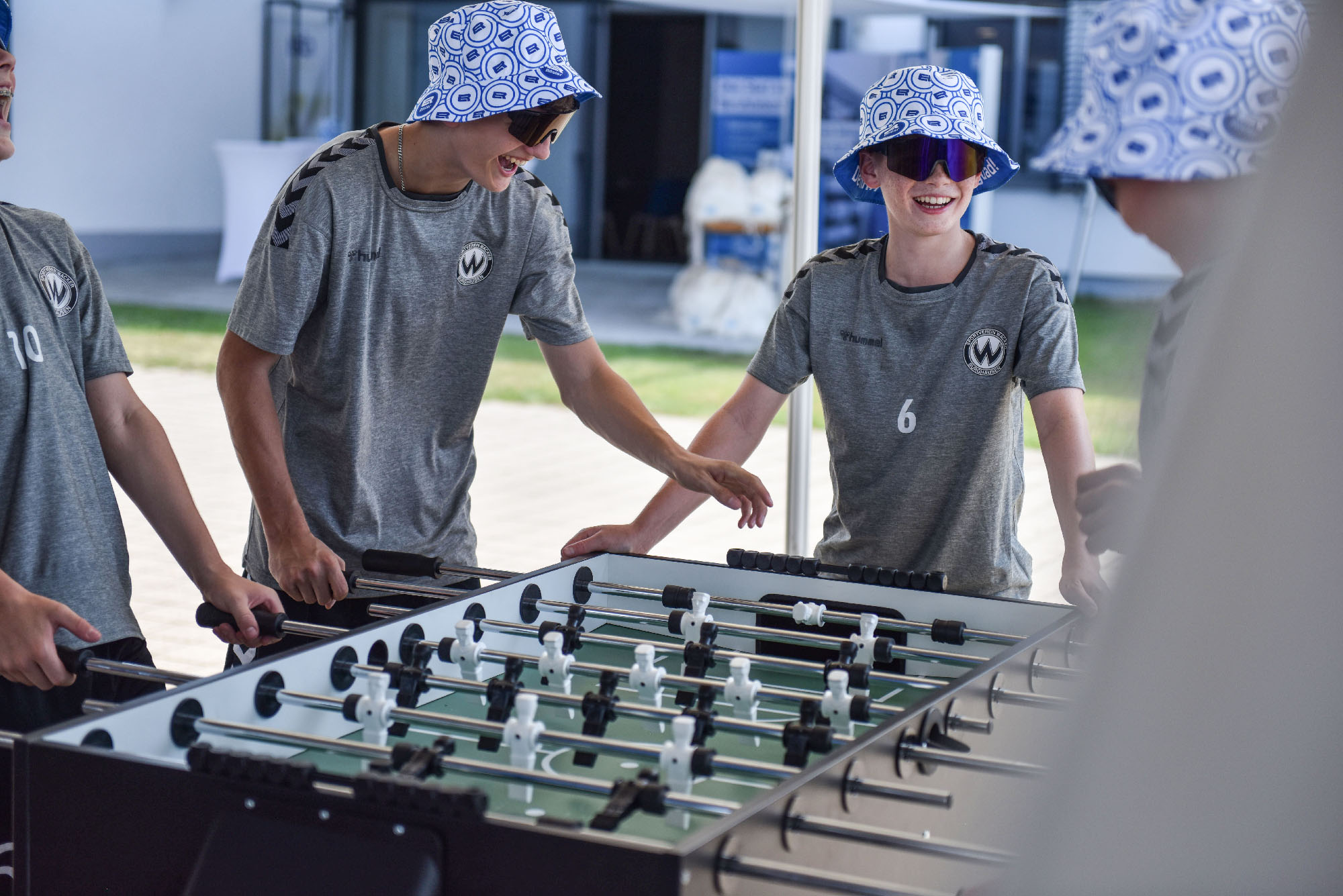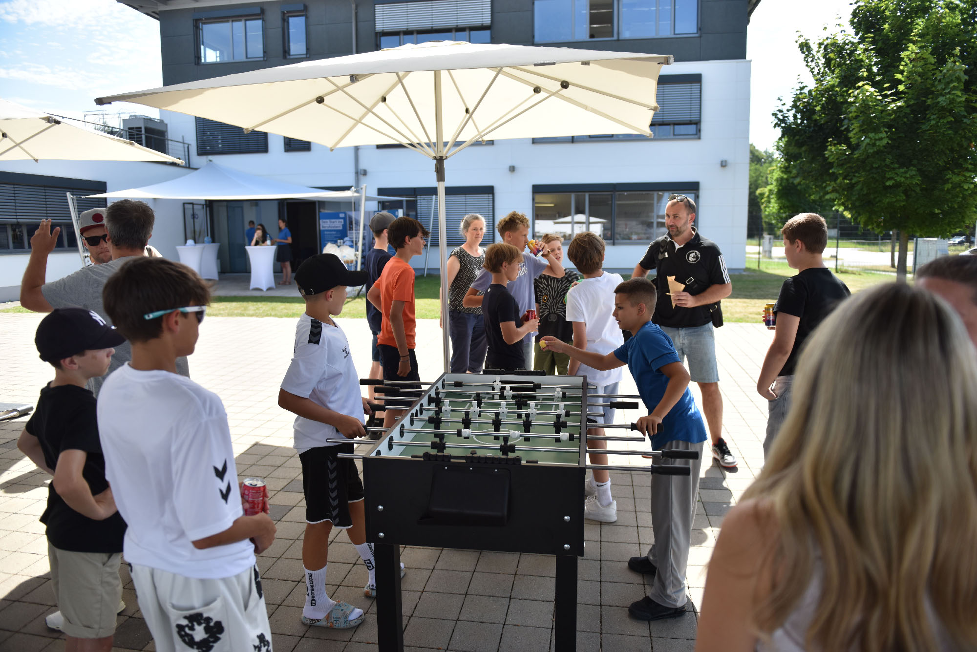 Schon beim Ankommen der Mannschaften herrschte gute Stimmung. Azubis und Kollegen von Elektro Rösler kümmerten sich engagiert um die jungen Sportler, spielten gemeinsam Kicker und „No-Beer-Pong“ und sorgten so für einen lockeren Start in den Nachmittag.